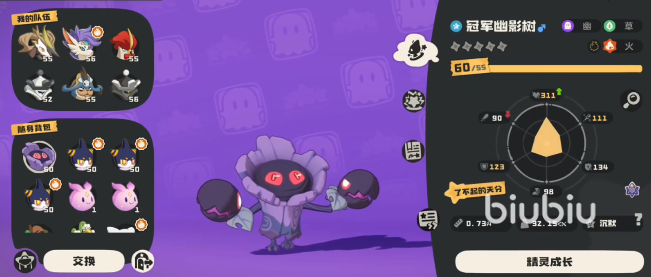 虽然外观相同,但冠军树的核心优势体现在其卓越的个体值和天赋属性。此精灵一经领取即具备顶级资质,各项基础数值均达到最优标准,完美复刻赛季冠军玩家使用的同款配置,同时还附带独特的专属特性,实战表现极为出色。