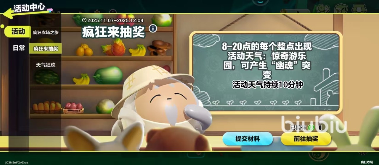抽奖所需的积分需通过“惊奇游乐园”天气事件获取。该特殊天气每日固定于20:00准时出现,持续时间为10分钟。在此期间,农场内所有作物将触发幽魂突变,生成变异果实。玩家只需采集这些果实并提交给田园阿公,即可获得相应积分。由于时间短暂且每日仅有一次机会,建议设置提醒以避免错过。持续积累积分是参与后续抽奖的基础保障。