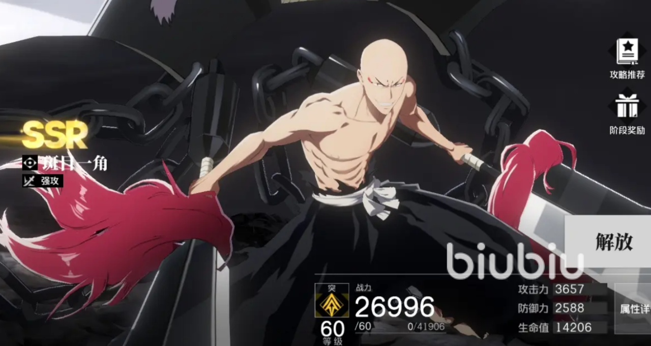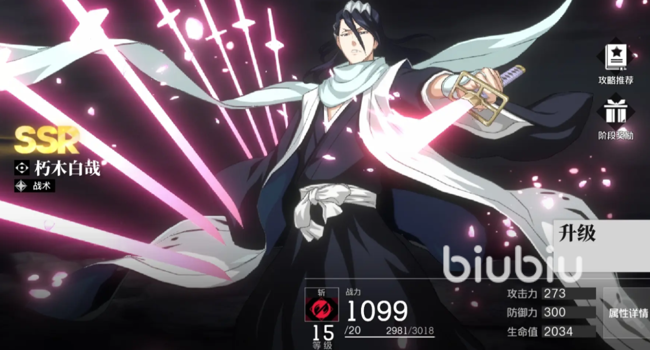 朽木白哉作为SSR级别的强攻输出,拥有穿透敌方防御的能力。释放终极技能后,可提升自身技术攻击倍率高达400%,在副本推进和群体清场方面表现尤为突出,堪称PVE内容中最强势的单体输出角色之一。