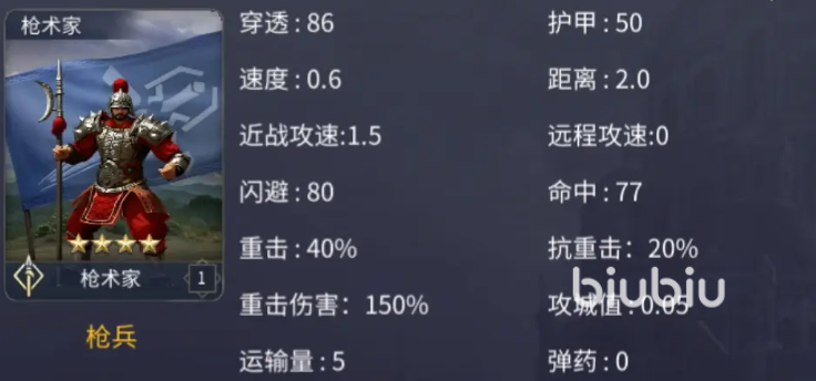 枪术家属于高机动性枪兵类型,被动提供对骑兵20%的伤害加成,并对所有近战攻击提升12%闪避率。不仅具备强大的反骑能力,还可破解隐武者的隐身机制,兼具生存与输出优势。