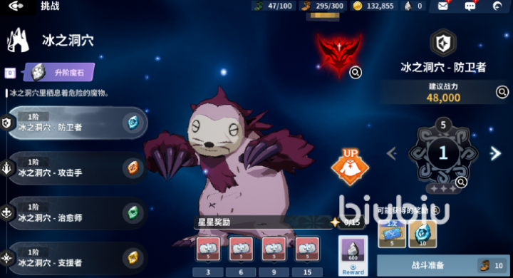 冰之洞穴设有多个分支路径,玩家需根据自身角色的职业选择对应的挑战路线。例如,防卫者职业应进入“冰之洞穴·防卫者”分支进行挑战,推荐战力约为48000。每个职业都有专属的副本线路,设计上兼顾了公平性与针对性。虽然整体难度适中,但若角色战力未达标,仍可能在战斗中遭遇较大阻力。副本支持重复挑战,只要拥有足够的体力和时间,便可持续刷取所需材料。