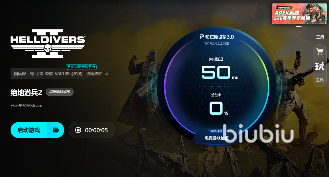 作为一款主打团队协作与高强度对抗的射击大作,绝地潜兵2在PC及主机平台上线后持续保持高热度。游戏中玩家可与好友组队执行任务,面对海量敌人展开激烈交火,而这类实时同步操作极度依赖低延迟、高稳定的网络连接。为此,推荐使用biubiu加速器来优化整体网络环境。新用户首次使用时无需付费,只需注册一个账号即可享受长达24小时的免费加速服务。此外,输入专属兑换码【biubiu不卡顿】还能额外获得三天免费使用权限,每个账号限用一次,非常适合初次尝试的玩家。