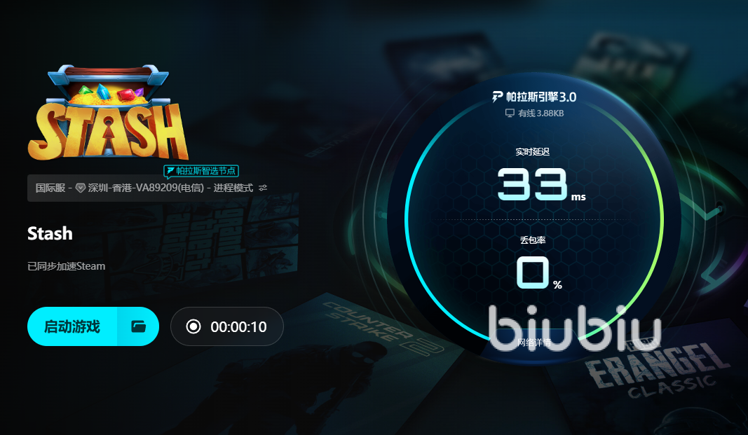 除了丰富的试用福利,biubiu在技术层面也有显著优势。该加速器已与职业选手Aixleft建立合作,将电竞级网络优化标准融入产品开发流程,确保用户在高强度使用场景下仍能保持流畅。同时,搭载新一代帕拉斯引擎3.0技术,有效降低延迟、提升数据传输效率,特别适用于Stash这类对网络质量极为敏感的应用环境。无论是单设备运行还是多端同步操作,都能实现低延迟、高稳定的连接效果。