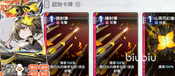 “准备发射”是维若妮卡的核心技能,消耗仅为一费,释放后可召唤一台投射机,并在后续每个回合自动生成一台新的。投射机作为一种特殊存在,无法手动打出,会在回合结束时自动消失并触发效果。尽管无明确费用标注,但其实际运作等同于零费卡,能够完美享受额外行动带来的增伤以及卡牌潜能加成。此外,还存在穿透型投射机,专门用于应对护盾单位,不过当前环境中出场率较低。