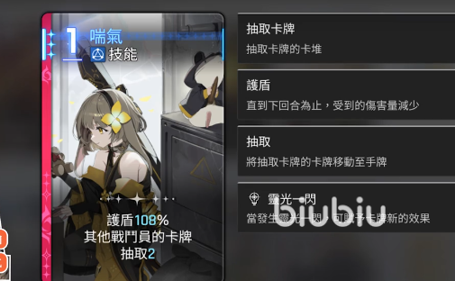 通过“灵光一闪”获得的衍生卡也极具战术价值。“喘气”是一张性价比极高的卡牌,仅需一费即可提供100%护盾,并抽取两名战斗员的手牌,在高速或低速卡组中均有出色表现,有助于快速获取关键组件。在三种衍生形态中,第一种最为常用,侧重辅助功能;第二种偏向输出强化;第三种虽为零费上盾,但触发条件不稳定,实战中使用频率较低。而“准备轰炸”则是“准备发射”的强力配合卡,能有效提高上膛上限,尤其在高速运转的卡组体系中,大幅增强整体输出效率。相较于百丽儿,维若妮卡的优势在于不占用团队资源的同时持续补充伤害,适配性强。
