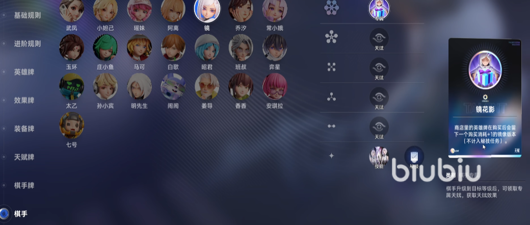 该棋手具备三项核心机制:被动技、秘技与六星专属天赋。其被动可在对局初始时额外获取3点能量,并在每次拍卖环节结束后再次获得3能量,使前期资源积累更具优势。秘技需消耗45能量,使用后可抽取一张名为“为我所用”的特殊卡牌,随机复制当前对局中其他棋手的一张秘技卡,实现跨角色能力借用,战术灵活性极高。当升至6星时,将从三位不同棋手的秘技卡中任选其一作为永久强化,进一步丰富策略选择。