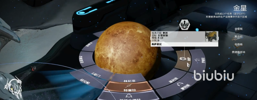 确认进入某一星球后,系统会跳转至详细的地图信息页面。在这里,玩家可以查看当前地图中的资源分布、敌人类型、任务目标等关键信息,所有重要内容均以高亮形式标注。此外,还可以在此界面调整装备配置、选择是否开启组队模式等,为接下来的行动做好充分准备。