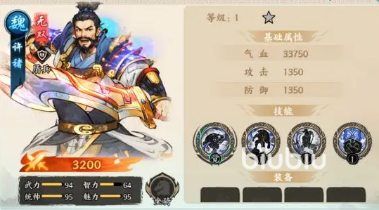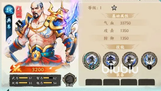 许褚:这位武将可通过新手签到或新手招募池轻松获得,是前期非常可靠的前排人选。初始气血与防御属性表现优秀,能够有效承受推图过程中的大量伤害。其技能还能为敌方附加寒冷状态,配合魏国阵营武将如郭嘉时,可进一步触发冰冻控制效果,形成良好的控制链。即使进入中期阶段,也不需要急于替换,持续培养即可发挥稳定作用。