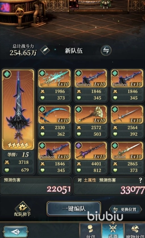 获得武器后,需将其装配进角色专属的武器盘中才能生效。该系统由一个主手位和九个副手位组成,且只有与角色职业匹配的武器才能装备。主手武器决定了角色释放的奥义技能,是战斗风格的核心;副手武器则主要用于提供被动效果和攻击力加成。值得注意的是,相同名称的副手武器可以叠加其属性增益,因此当玩家拥有多把同款武器时,建议优先全部放入盘中使用,而非立即用于升星。只有在数量超出实际搭配需求后,再考虑消耗多余武器进行星级提升。