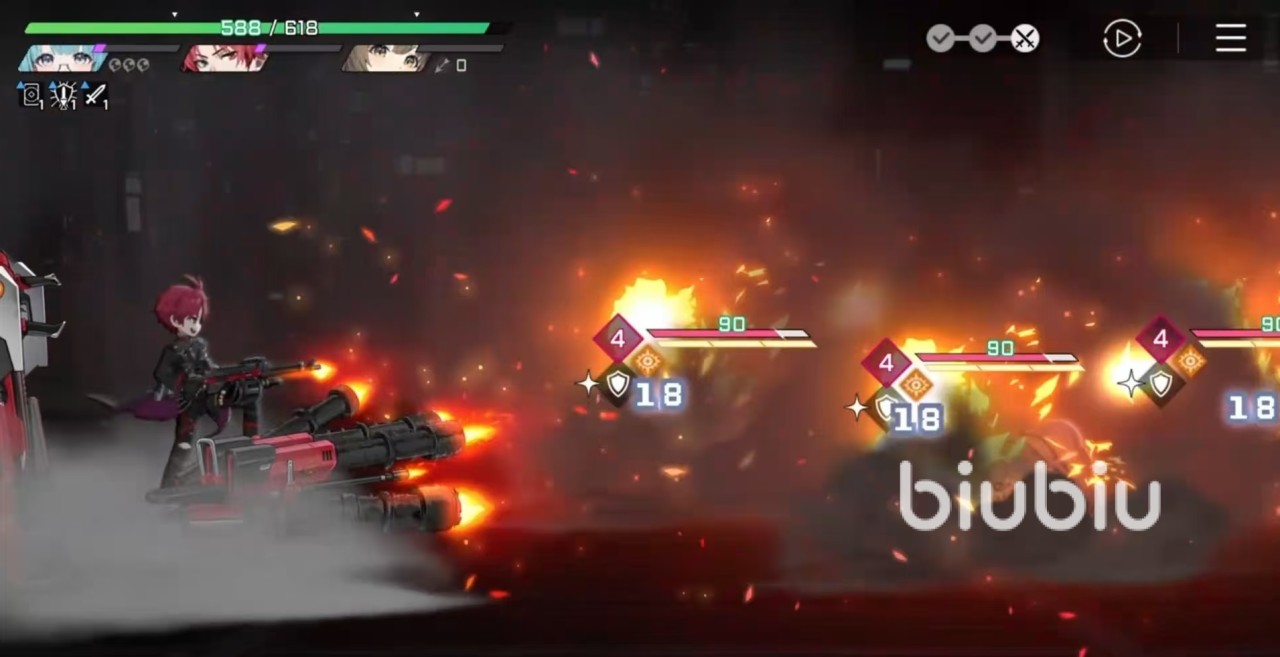 在应对群怪场景时,火焰斩击具备优秀的清场能力,可对全体敌人造成可观伤害。大招“全弹发射”建议保留至敌人密集时释放,以最大化范围爆发输出。卢卡斯共拥有五种不同类型的弹药,需根据战场情况灵活切换:对抗带有护盾的目标时,优先使用穿甲弹以突破防御;需要降低敌方输出时,爆炸弹可有效压制其攻击力;面对多个敌人时,扩散弹能让全体陷入损坏状态,随后衔接火箭弹进行持续输出;当敌方即将释放关键技能时,冷却弹可打断其行动节奏。值得注意的是,所有弹药的使用应尽量安排在SSS增益生效后,从而实现伤害收益的最大化。