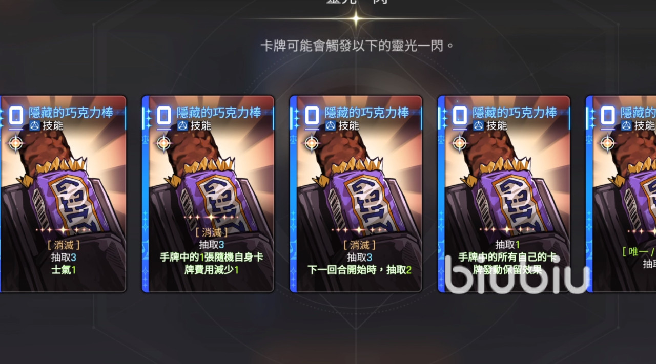 技能三:隐藏的巧克力棒,无需消耗行动点,属于消灭类技能,使用后可抽取3张手牌,增强后续操作灵活性。