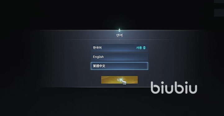 该游戏是自带繁体中文的,大家启动韩服游戏之后,在界面的右上角找到齿轮设置点开,上面横排选择第三个,下面选择第一个,点击进入语言页面,然后就可以看到韩文,英文和繁体中文的选项,直接选择并按下方黄色框按钮即可,操作非常简单。
