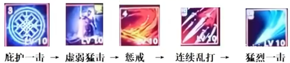 连招侧重于建立仇恨和团队保护,起手先挑衅,拉稳仇恨后,以【庇护一击】和【虚弱猛击】进行减伤与破防,再通过【惩戒】和【连续乱打】蓄力输出,发生格挡后,注意利用被动提升全队的攻击。