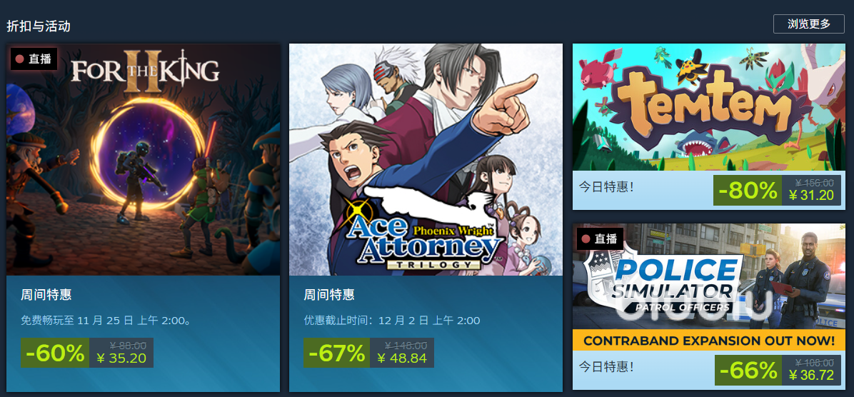 它还支持几乎所有steam游戏,《绝地求生》、《CS:GO》等热门作品,或者新上线的小众精品,均会每日更新,还网罗了各大平台的“喜加一”游戏,满足您的小喜好。