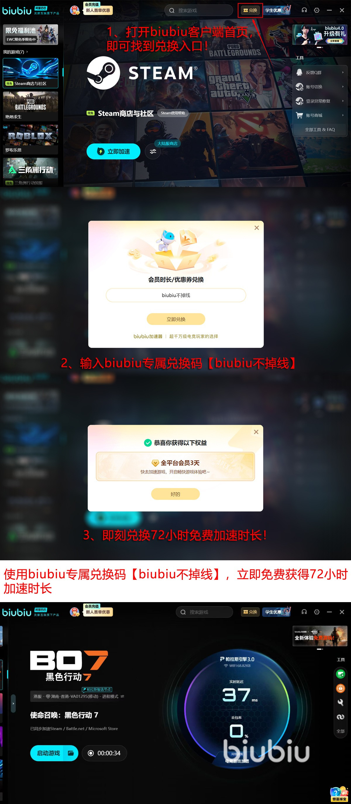 结合以上优点,biubiu加速器就是使命召唤22黑色行动7玩家们的最佳搭档,不仅技术强、速度快,还有丰富的福利拉近与用户的距离,让游戏数据完美送到每一枪每弹中。快来注册账号领取专属福利开启你的使命召唤22黑色行动7畅玩之旅吧。