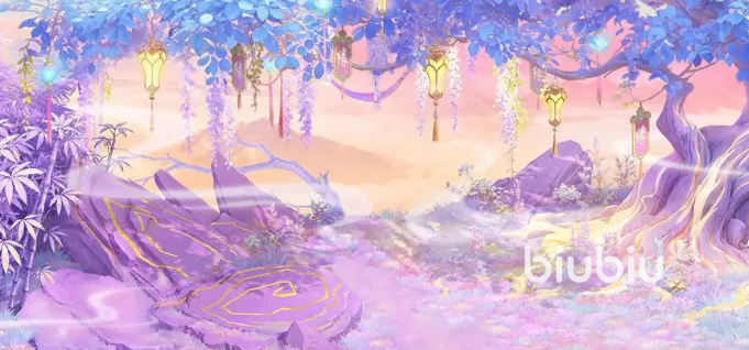 整个落伽山场景设计极具禅意,从挂满灵灯的参天古树,到云雾缭绕的莲花池,每一处细节都彰显出宁静致远的气息。庄严的殿宇与自然生长的灵木相映成趣,营造出既温暖又肃穆的修行氛围,充分体现了此地作为修行圣境的独特气质。