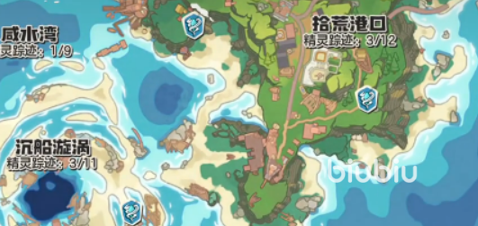 位于咸水湾下方的是沉船漩涡,环境阴暗潮湿,遍布沉没船只的残骸,氛围略显诡异,潜伏着不少危险生物,探索时务必提高警惕。往左上方延伸可抵达信仰者村落,村庄规模不大,但内部设有魔法锅与营地设施,隐藏着一些未公开的任务线索等待发掘。而在信仰者村落正下方则是拾荒港口,此地不仅结构复杂,还驻守着一名强力BOSS,整体战斗难度较高,建议队伍配置完善后再行挑战。