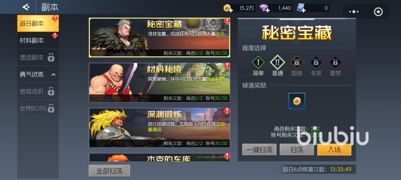 每日副本涵盖材料秘境、秘密宝藏、深渊锻炼等多个子类型,分别产出金币、强化纤维、深渊邀请函及锻造道具等关键养成资源。这些副本随角色等级逐步开放更高难度,并设有每日挑战次数限制,因其资源产出稳定且必要,成为玩家每日必做的日常任务之一,优先级极高。禁区副本则需在通关档案4-1之后方可激活,属于多人协作型副本。玩家可组队进入,副本内设六个区域,对应不同难度层级,挑战评分达标后可解锁更高级别,奖励也更为丰厚。