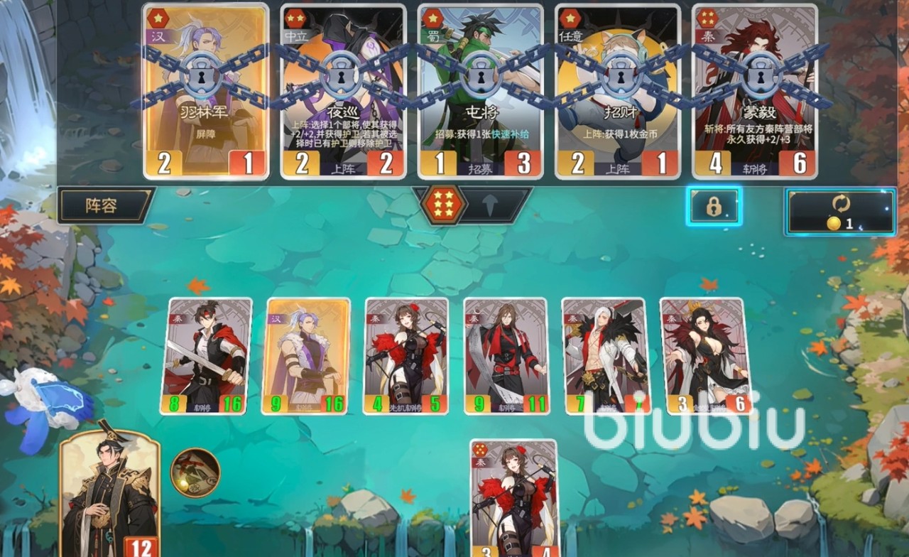 在实战过程中,若需调整阵容体系,已合成的金卡不建议立即出售。可暂时保留在手中,以便后续根据战况灵活上阵。另外,商店中的部将支持锁定功能。当发现某张卡牌能帮助完成金卡合成,但当前金币不足时,可先将其锁定,等到下一回合获得经济后再行购买,确保不错失关键组件。