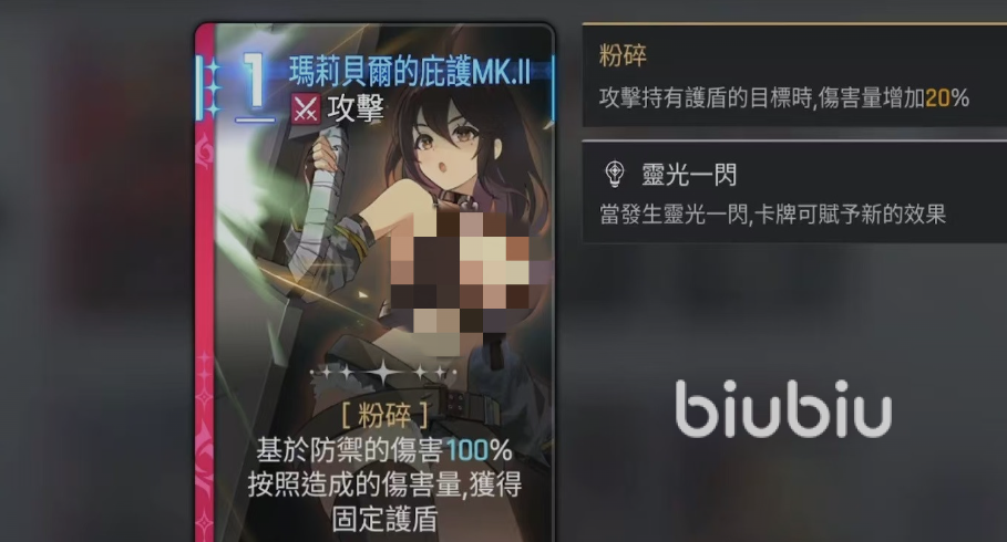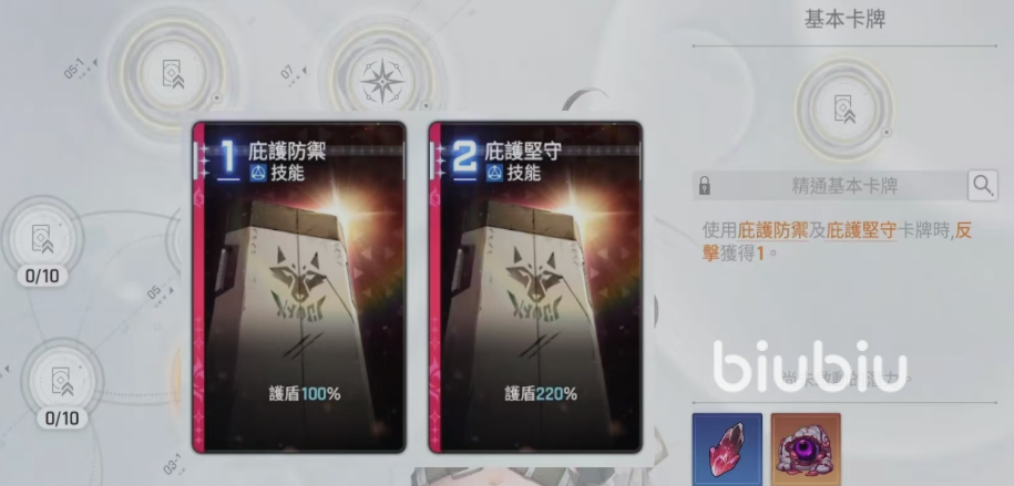 在初始卡组配置上,玛丽贝尔配备了四张基础卡牌:庇护防御、庇护坚守、意志的冲刺以及庇护飞踢。其中,庇护飞踢和意志的冲刺为攻击类卡牌,前者伤害会随当前防御值提升而增加,后者不仅能基于防御造成伤害,还可为目标附加一层反击状态。技能卡“庇护防御”可快速生成护盾,提升即时生存能力;而“庇护坚守”虽需消耗两点费用,但提供的护盾量远超常规防御技能,进一步强化了她在防守端的优势。