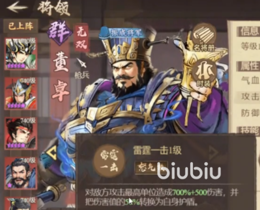 前排承伤角色董卓在该阵容中承担关键作用。他的技能机制可将所受伤害的一定比例转化为护盾,尤其在攻击敌方最强单位时,能将50%受到的伤害转为护盾值。此外,每当场上存在处于麻痹状态的目标时,董卓还可额外获得相当于自身最大生命值11%的护盾,持续8秒。配合曹操提供的增益效果,董卓几乎可维持全程护盾覆盖,显著提升前排抗压能力。