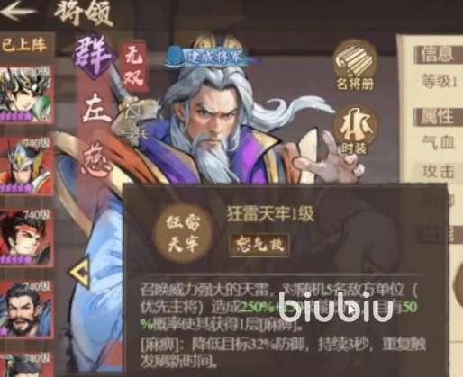 该体系的核心输出控制启动者是左慈。其怒气技能可同时攻击五名敌方单位,并有50%概率使目标陷入麻痹状态,大幅削弱敌方防御能力,为后续连环控制与输出铺路。当左慈升阶至11星后,即使阵亡也会触发雷暴效果,再次释放麻痹控制,极大增强了控制链的延续性,令敌人难以摆脱被控节奏。