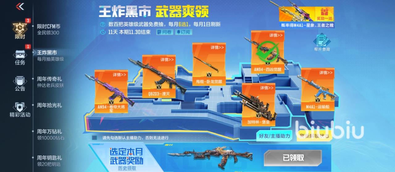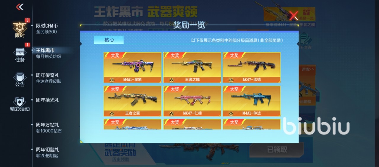 王炸黑市的核心玩法基于抽卡机制,每位玩家每月可默认获得三次开启机会,只需登录游戏即可领取。若完成指定排位赛任务或邀请好友协助助力,还可额外获取三次抽取权限,总计达到六次抽奖次数。每次开启都有机会随机获得英雄级别武器,且一旦成功领取某款武器,后续将不会重复出现,确保了奖池的多样性和公平性。