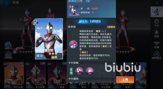 游戏初期无需过度追求复杂阵容搭配,建议以强度为导向,优先使用当前最强力的角色。即便某些高等级角色星级偏低,也可暂时投入战斗。进入中后期阶段,随着角色池逐渐完善,可转向更具策略性的功能型阵容布局。此时推荐将迪迦复合型锁定为主战核心,其必杀技可造成450%的技能伤害,并附加10%暴击率和10%暴击伤害加成,短时间内即可释放出极强的爆发输出。