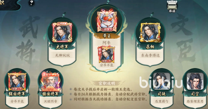 官职系统也会为战功获取带来额外加成。系统会根据全天战功排名分配官职,担任相应职位后可享受多重福利。太守竞选于每日12:00至14:00开启,若当日战功表现突出,便有机会参与角逐,获胜者将获得包含武功秘籍在内的丰厚奖励。因此,在日常游戏中注重战功积累,不仅能提升排名,还能增加进入高级官职竞争的机会。