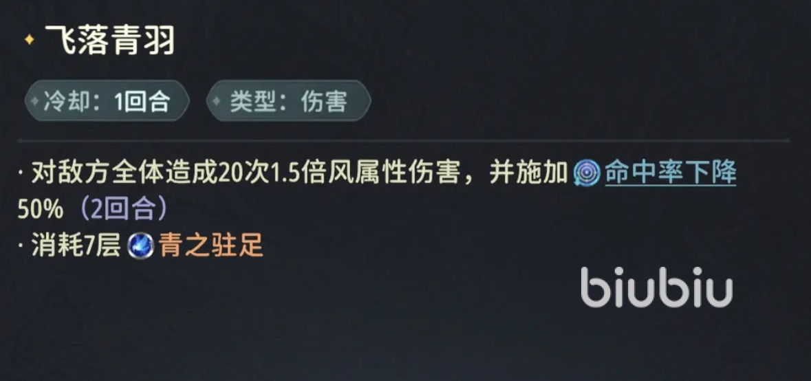 米蒂尔则走的是另一种爆发路线,依靠积累“青之驻足”状态实现群体打击。当“青之驻足”达到7层时,她可对敌方全体发动20次1.5倍风属性伤害,并使目标在接下来两个回合内命中率降低50%。同时,“青之驻足”本身也会为米蒂尔带来多项增益,包括攻击力、技能伤害、攻击上限以及触发二连击的概率均有提升。
