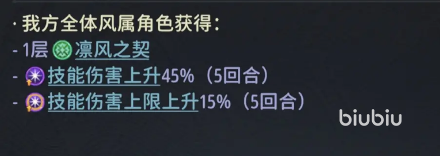 为了高效叠加“凛风之契”,队伍中加入了辅助型角色弗洛拉。她的第一技能可为全体风属性单位附加一层“凛风之契”,该效果不仅作用于兰朵莉亚,也能惠及其他风系成员,提供45%的伤害加成及5%的伤害上限提升。此外,她的被动技能允许风属性角色根据所拥有的“凛风之契”层数,进一步增强奥义与风属性技能的伤害输出。其大招还能对单个敌人施加“讨伐之种”,使其攻击力与防御力下降,兼具削弱与增益功能,是团队中不可或缺的多功能支援者。