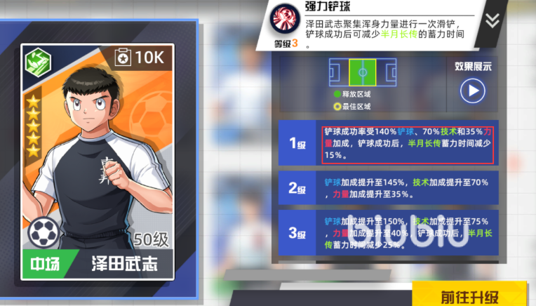 至于坚韧型球风,虽然其增益效果相对隐蔽,但依然具有战略意义。它并不直接增强身体对抗,而是延长球员持续施放技能的时间,同时在技术类技能触发时提供额外支持。因此,坚韧属性更适合搭配其他球风共同发挥作用。此外,部分球员还拥有主副双球风设定,例如泽田武志便兼具技术和力量双重球风,使其“强力铲球”技能可在滑铲过程中缩短长传蓄力时间,这一效果从1级起即可生效,极大提升了他在中场调度中的实用性。