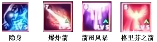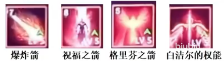第一个是对冲击增伤,然后【祝福之箭】也是暴击增益,【格里芬之箭】是群攻技能加灼烧效果,最后一个是攻击加成。属性要优先堆攻击力、暴击率,射程上可以适当堆。