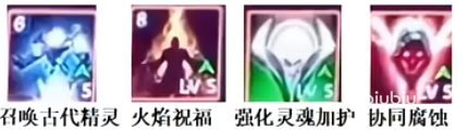 必带的就是这第一个,是核心的召唤技能,其他事提供增益和强化的,最后这个【协同腐蚀】可以减抗性并加爆发。属性以魔法攻击、增加召唤物强度、缩短冷却时间为主。