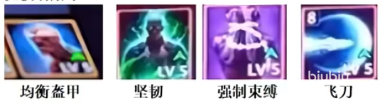 首先【均衡盔甲】是必带的烙印,它可以抵抗控制,然后第二个保命,第三个可以沉默敌,最后用【飞刀】破盾+击倒,或者换成【吸血剑】,也可以提高生存。属性需要在保证输出的同时,兼顾生命值和冲击抵抗。