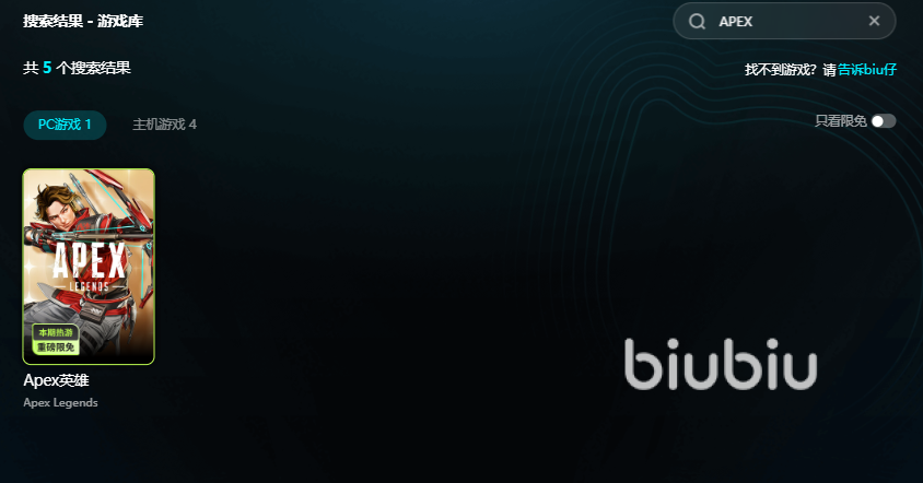 对于希望长期体验外服内容的玩家来说,biubiu加速器支持多种游戏模式及平台版本,涵盖主流国际服和本地服务器。除了APEX英雄之外,平台还集成了众多热门游戏资源,用户可自由搜索所需项目进行加速。无论是手游、PC端模拟器运行的游戏,还是各类数字商店中的新作下载,均可享受提速服务,缩短等待时间,快速进入游戏核心环节。