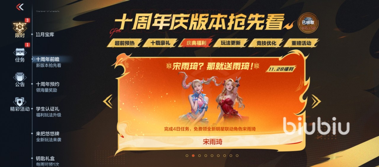 此次十周年庆典活动持续预热近一个月,除宋雨琦角色外,还同步推出多项福利内容。例如王者81式武器、M4仲达皮肤等稀有装备也将作为活动奖励免费发放。这些道具平时获取难度较高,此次集中投放极大提升了玩家的游戏体验与参与热情。