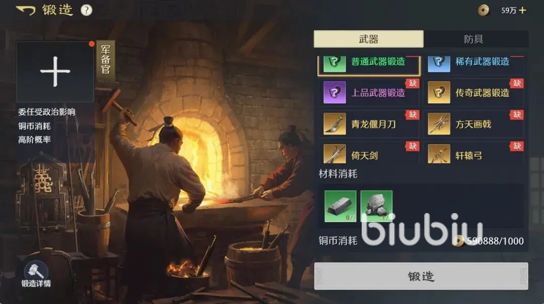 主城达到7级后可建造铁匠铺,开启装备打造功能。若获取特定橙装图纸,还可制作对应高级装备。部分橙色品质装备具备专属效果,能与特定武将技能产生联动,带来显著战力提升。装备材料可通过商贾系统使用褒奖令兑换获得。早期为主力队伍配备一套成型装备,能大幅增强战斗表现。云游系统每日刷新,有机会免费获取前述橙装图纸、高阶打造材料、宝物以及橙色武将,属于不可忽视的重要资源来源,务必每日参与。