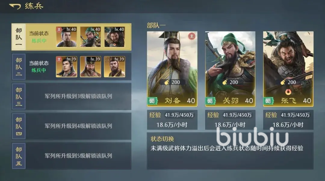 升级是最直接的战力提升方式,尤其在前期阶段尤为重要。高等级武将在开荒推图和PVP对抗中具备明显优势。同一支队伍中的所有武将每场战斗获得的经验相同,而不同部队则根据出征情况分配经验。建议集中体力用于单队刷流寇,以最大化经验收益。若无法频繁上线,系统提供的练兵机制可在体力溢出时自动转化为练兵经验,确保角色不会落后进度。