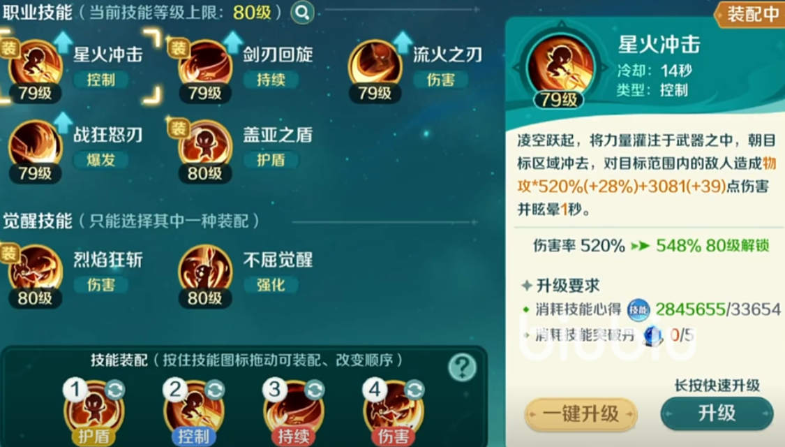 在PVP战斗中,核心技能应优先点满星火冲击,此技能具备位移与控制效果,实战中非常关键。盖亚之盾必须点满以提升防御能力,同时不屈觉醒也需拉满,提供关键的免控与爆发回复机制。剑刃回旋可酌情投入点数,若资源充足,建议优先提升其减速效果,若点数紧张,则主加免控属性更为实用。被动技能方面,推荐集中资源点亮“出战正位”,该被动带来的综合属性加成远超其他选项,尤其是攻击与生存双方面的提升极为显著,切记避免选择战神之力或全方位提升这类泛用性较低的天赋。