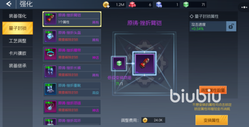 为了降低强化失败带来的损失,玩家可以使用强化保护剂来确保即使失败也不会降级。该道具不仅能防止等级倒退,还能累积保护进度,当进度条满至100%时,下一次强化必定成功。此外,量子封锁系统也为角色提供了额外的成长空间。通过解锁粒子,玩家可以获得随机属性加成,进一步增强角色性能。尤其是使用高级解封粒子时,最多可一次性获得三项不同属性,为装备提供更多可能性。