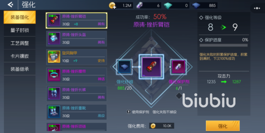 装备系统是提升战斗力的核心途径之一。初始阶段的装备属性较为基础,但通过持续强化可显著提高其数值表现。强化过程中需消耗强化纤维和高级强化纤维等材料,用于提升装备等级。单件装备在强化时还需使用记忆芯片作为辅助道具。值得注意的是,当装备等级未达到8级前,强化过程相对稳定;一旦超过8级,后续升级将存在失败风险。若强化失败,不仅无法提升等级,还可能导致当前等级下降。