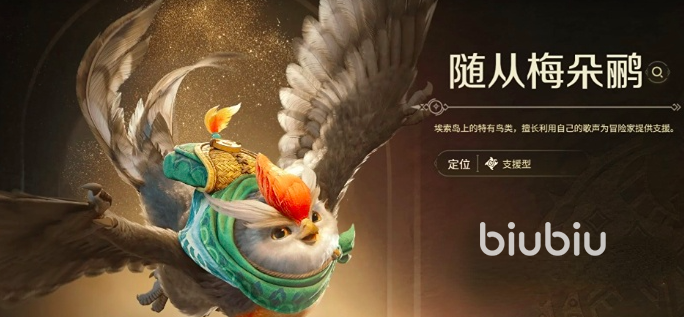 第二位推荐的是梅朵鹂,这是一位以支援为核心的鸟类随从,拥有独特的声波增益技能体系。其核心功能包括团队状态强化与持续生命恢复,能够在长时间对抗BOSS或复杂环境作战中有效提高队伍生存能力。尤其在面对需要持久作战的副本任务时,梅朵鹂的治疗与增益效果显得至关重要。