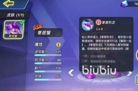 在角色选择方面,新手建议优先尝试“寄居蟹”。作为SSR级别的角色,其获取方式较为简便,且操作门槛低,非常适合初学者使用。该角色主打敏捷特性,具备高速移动能力,还能缩小体型进一步提升移速。在此状态下,普通攻击无法对其造成影响。当对手释放技能时,玩家可抓住时机点击提示区域,完成“捏碎”反击。但需注意的是,寄居蟹的跳跃高度有限,不推荐主动使用二段跳,建议等待敌人跃起后再伺机抢断并发起进攻。