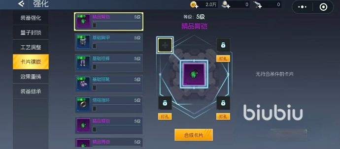 其次值得关注的是卡片镶嵌系统。玩家可通过将高级资源卡嵌入对应装备槽位,激活额外属性加成,并推动卡牌等级成长。该机制有助于均衡角色各项能力值,但需注意:一旦完成镶嵌,卡片无法直接拆卸,必须借助“抽生取卡机”这类特殊道具才能回收,因此在部署时务必审慎规划,避免后期调整困难。