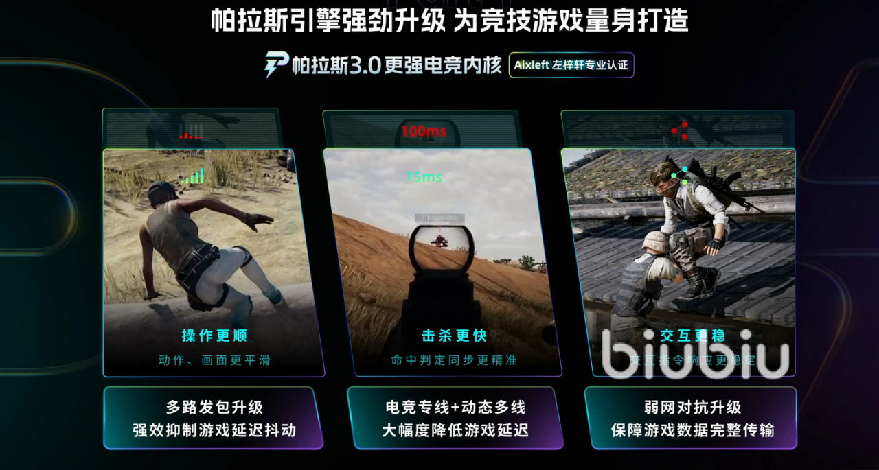 该游戏出现掉帧主要原因在于跨服连接的过程中因为数据传输链路过长,路由情况比较复杂,再加上游戏热门时间段服务器负载过高等,biubiu加速器利用自身升级之后的帕拉斯3.0引擎,就能很好的解决这些问题。在功能方面主要就是利用自身覆盖全球的网络专线和独有的节点切换技术,优化在连接过程中使用的节点,做到数据传输稳定可靠,另外专线还能缩短跨国数据传输过程中的路径,让响应速度变得更快,自然就能在网络方面避免出现延迟高,掉帧这样的问题。为了更好的提供服务,biubiu在升级技术的时候还邀请到了绝地求生冠军选手Aixleft加入,从电竞选手的角度发现问题及时提升。