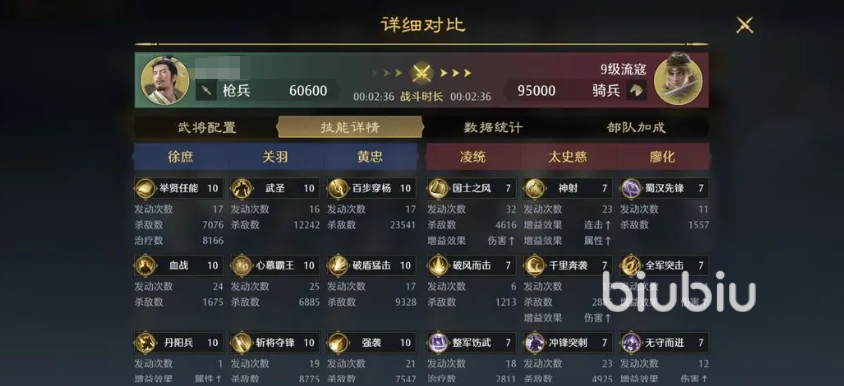 徐庶应配备【惜兵爱民】与【乐山善西兵爱民】两项兵法。前者每3秒有40%概率恢复部队兵力,且每次成功恢复均可达到125%的治疗量;后者则提升自身10%的治疗效果,两者结合极大增强了徐庶的续航能力,使其能在长时间战斗中持续发挥作用。黄忠则推荐携带【死地求生】与【奋鼓】,自战斗第18秒起获得倒戈能力,并在受到伤害时提升自身属性5%,从而在后期阶段实现更高的生存与输出平衡。