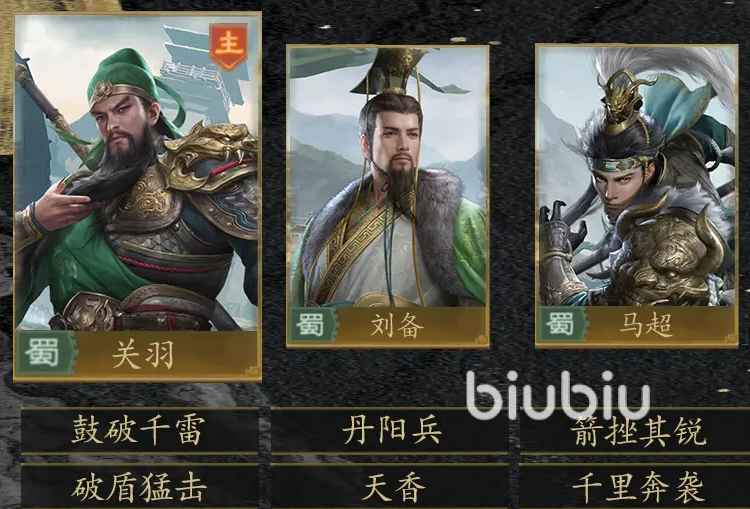 此阵容以刘备为核心,其自带技能【天香】具备稳定的减伤与群体治疗效果,不仅能为自身提供保护,还能随机恢复两名队友的生命值,极大提升了队伍的持久作战能力。此外,该技能还可附加重伤状态,使敌人无法轻易恢复战斗力,从而在攻防两端均占据主动。