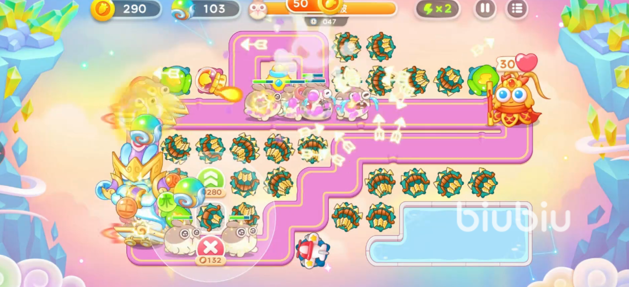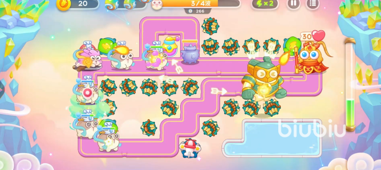 星君出现的同时,还会伴随重生兔和蛋类单位。此时应优先处理蛋和重生兔,避免其干扰主线输出。中期阶段需持续追击星君,并补充多个2级箭塔进行压制,随后逐步升级至3级。注意靠近萝卜位置的炮台不建议升到3级,因其使用频率较低,性价比不高。在整个追击过程中,只要保持火力集中,压力相对较小。但当仙女兔出现时需格外警惕,尤其是与战车兔一同行动的那只,必须第一时间锁定并击破,否则极有可能导致萝卜被摧毁。一旦清除仙女兔威胁,后续只需专注输出星君即可顺利完成任务。