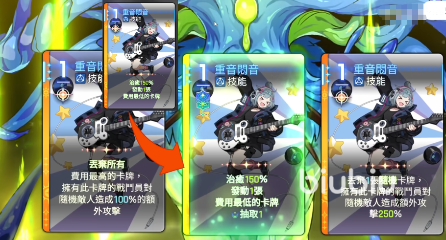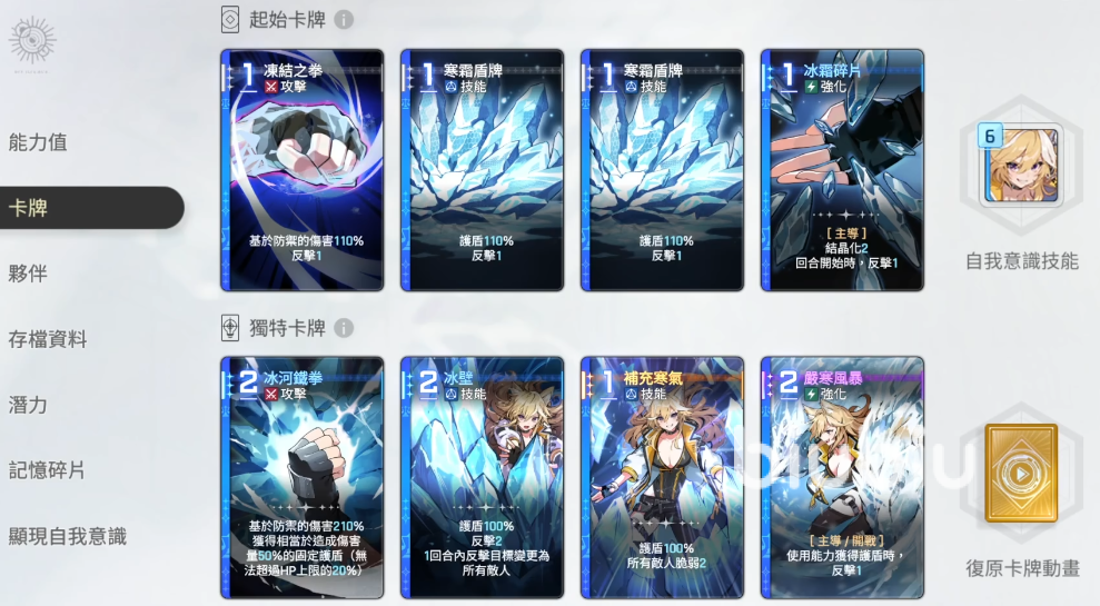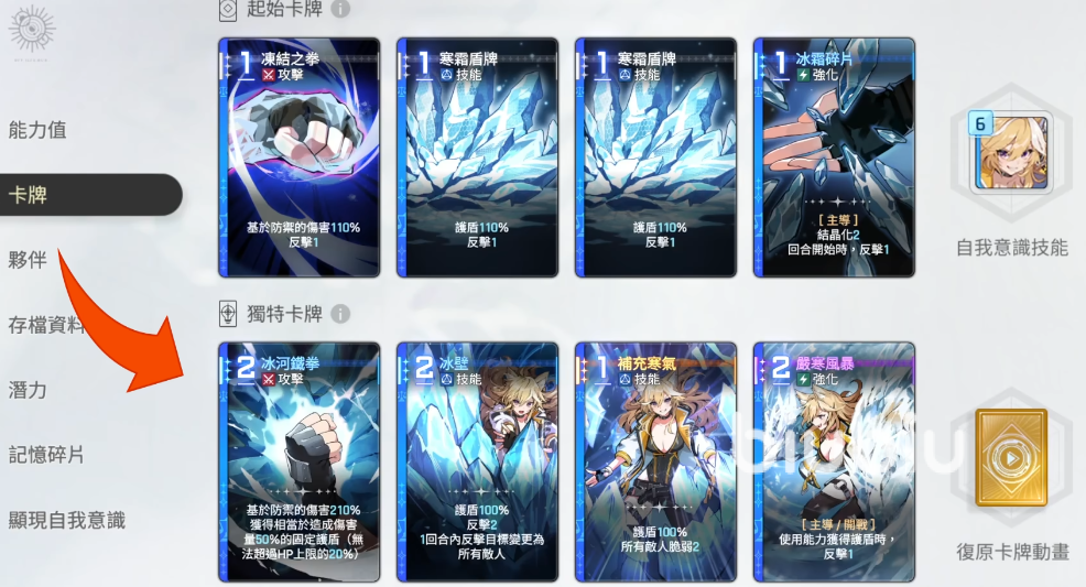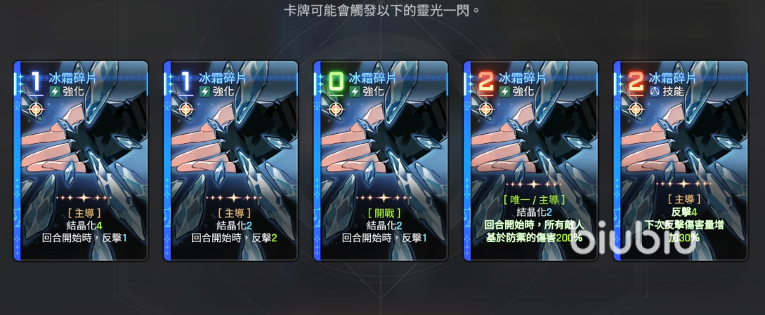 游戏初期,每位玩家都会获得一份包含全部基础卡牌的初始存档。这些卡牌均为原始版本,其中蓝色和黄色品质的卡牌具备“灵光一闪”潜力。所谓灵光一闪,是指将一张基础卡牌转化为五种可能变体之一的过程。例如,原本每回合开始提供一次反击的基础一装碎片(费用为1),若成功触发第四种变体,则可在每回合开始时,依据自身防御力对全体敌人造成200%的伤害。这一转变不仅改变了技能机制,还带来了稳定的范围输出能力。